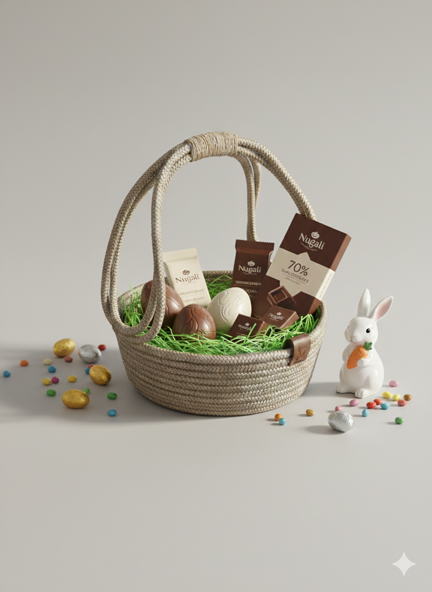 Cesto de Páscoa Artesanal | Ninho de Chocolate | Bege | Corda Náutica Premium